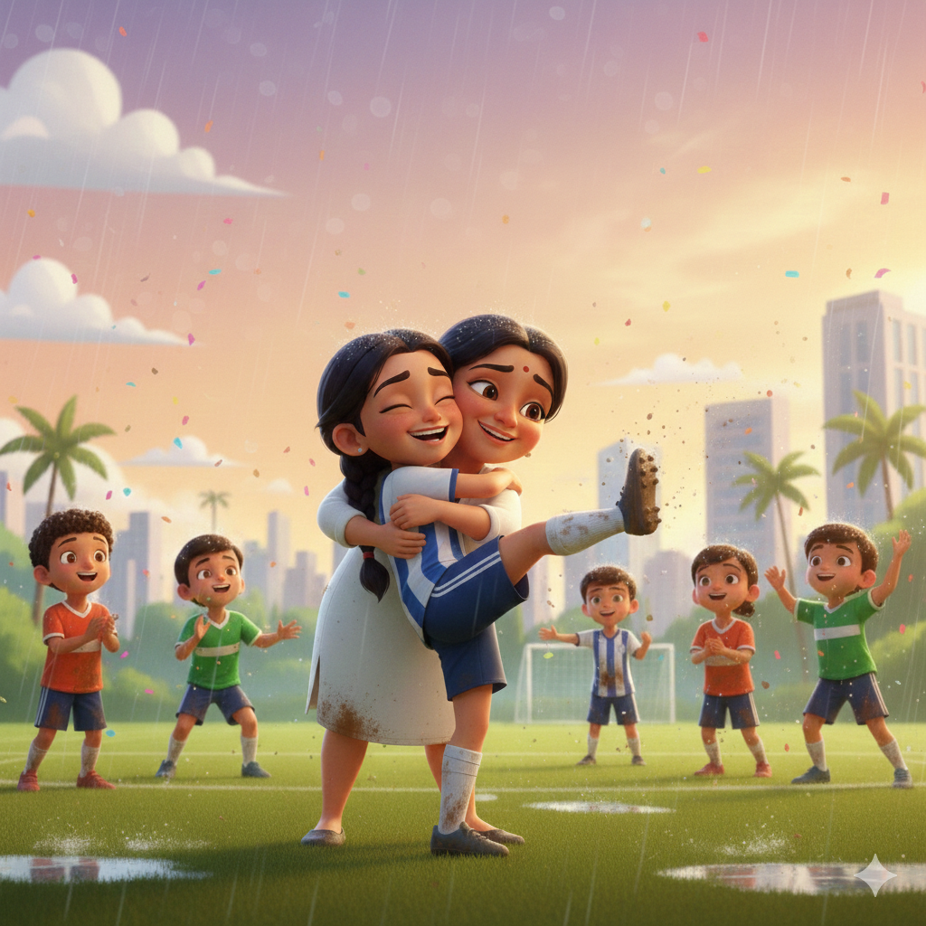 In a vibrant Singapore apartment, 13-year-old Sanjana lived with her doctor mom, Dr. Lakshmi, and her engineer dad, Aravind. An Indian NRI student, she loved soccer with all her heart. But on her international school’s elite team, she often felt out of place.
