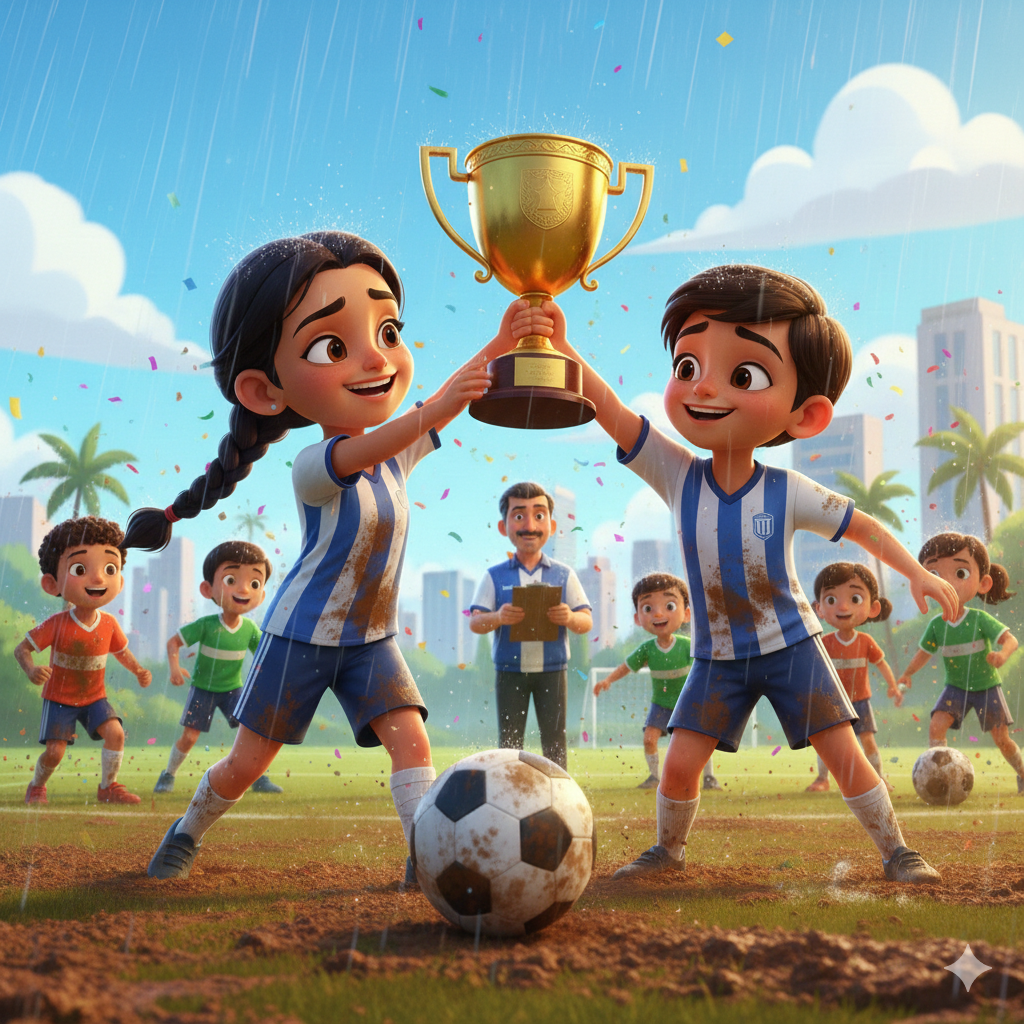 Ignoring the pain in her ankle, she passed the ball with precision. She shared teamwork strategies her father had taught her from Indian matches he admired. She lifted spirits, turned mistakes into laughter, and united the team.